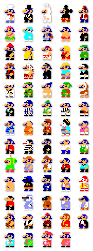 - Joe passed this one along: some say that the reason Mario is so popular is because he’s basically an every-man, someone that most anyone can identity with. Well now that’s officially a fact. Check out 64 Marios: