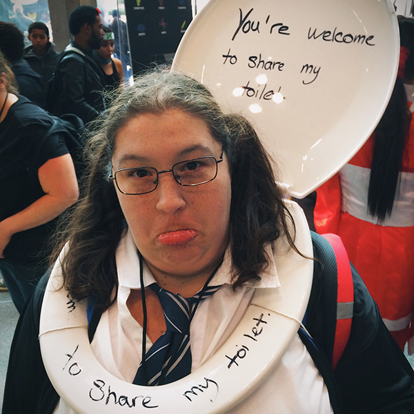 99% of the cosplay you’ll see at NYCC or likewise is inspired some movie/tv show/book/comic/video game/etc. And the remaining 1% can be classified under “other”. In this particular case, the cosplayer was seemingly inspired by what was handy at the local 99-cent store…